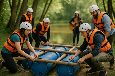 Sport, Spiele, Reisen oder Aufgaben, die den Zusammenhalt stärken. Beispiele: Floß bau, Escape-Room, Klettern, Kochkurse.