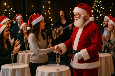 Zum Jahresende kommen alle Mitarbeiter zusammen, um gemeinsam auf das Jahr zurückzublicken. Mit Essen, live Musik und oft kleinen Geschenken. Auch Weihnachtsmann darf nicht fehlen.